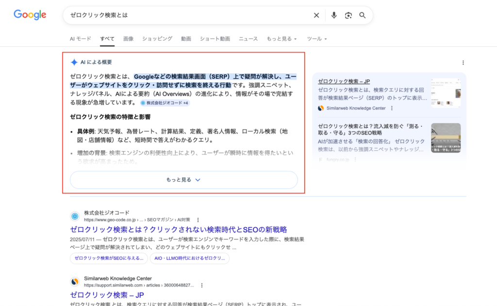 その結果、ユーザーは必ずしも個別のページをクリックせず、AI要約を起点に情報を把握する行動を取ることがあります。