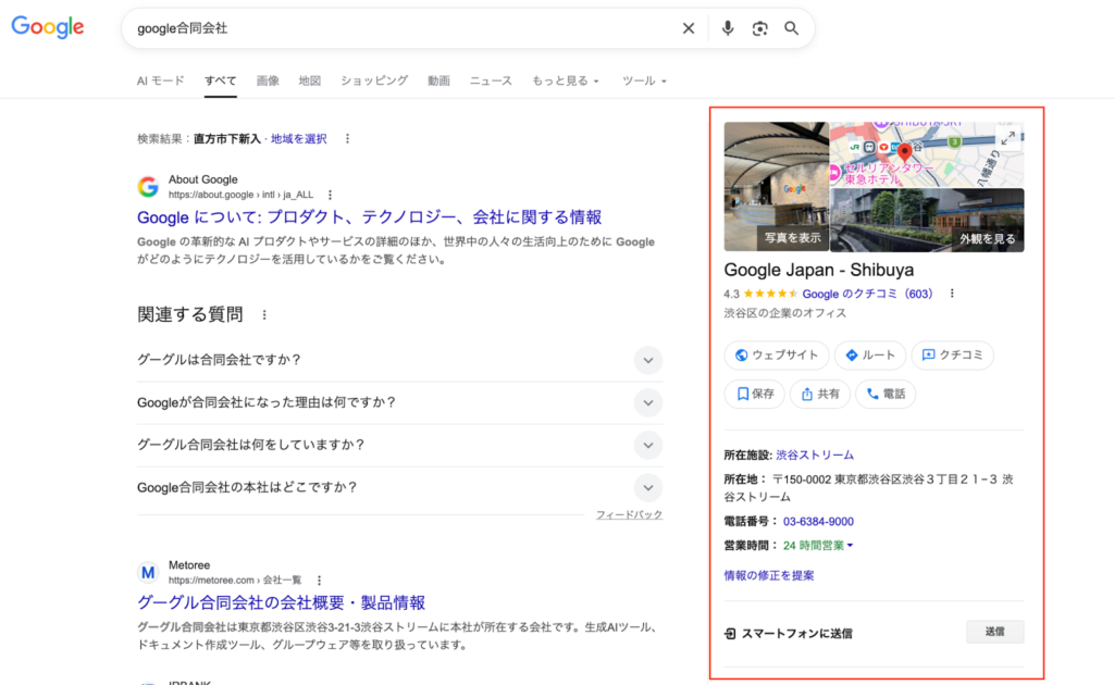 ナレッジパネルは、人物・企業・施設・場所などの基本情報を整理して表示する枠です。